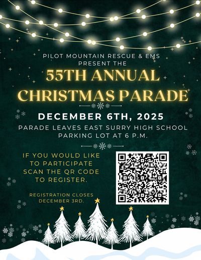 The Pilot Mountain Rescue Squad is happy to announce that the 2025 Christmas Parade will be held on Saturday, December 6th.